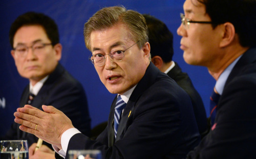 더불어민주당 문재인 후보가 27일 염두에 두고 있는 비영남 출신 총리 후보자가 있고 대선 직전 공개할 의사가 있다고 말했다. 정부조직 개편에 대해서는 최소화 방침을 시사하면서도 ‘통상 기능 외교부 이관’ 방침을 밝혔다.