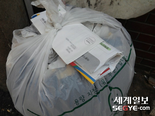 | 서울 종로구의 한 고물상 앞에서도 공보물과 쓰레기가 함께 들어있는 봉투가 발견됐다. |