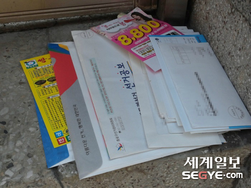 | 서울 종로구의 한 주택 현관. 가져가지 않은 공보물이 고지서, 전단 등과 그대로 방치됐다. |