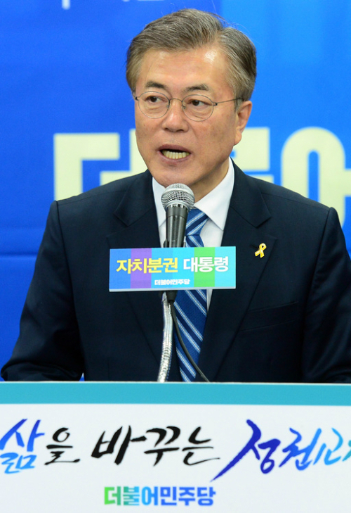 | 더불어민주당 문재인 대선후보가 27일 오후 서울 여의도 더불어민주당사에서 `내 삶을 바꾸는 정권교체` 정책시리즈 21 - `전국이 골고루 잘 사는 대한민국` 자치분권정책 발표를 하고 있다. 남정탁 기자 |