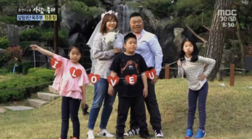 30일 MBC '사람이 좋다' 방송에 공개된 개그맨 정종철(뒷줄 오른쪽)과 아내 황규림씨( 〃 왼쪽)와 아이들의 화목한 모습. 사진=방송화면 캡처