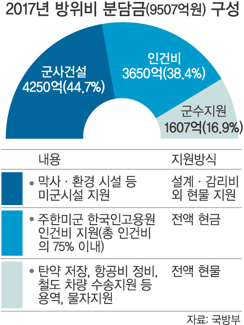 지난해부터 북한 핵 미사일 위협이 커지면서 미국의 부담이 커지고 있는 것은 미국 측의 주한미군 방위비분담금 증액 요구를 부채질한다는 평가다. 미국은 북한이 핵실험을 하거나 장거리 미사일을 발사할 때마다 핵 항공모함과 B-1B 전략폭격기, F-22 스텔스 전투기, 핵잠수함 등 운영유지에 많은 비용이 드는 전략자산을 한반도에 지속적으로 전개하고 사드 1개 포대를 주한미군에 배치했다. 한국 방어를 위한 미국의 부담이 더욱 커졌다는 뜻이다. 이에 따라 미국 측이 올해 방위비 분담금 9507억원보다 많은 1조원 이상의 방위비 분담금을 요구할 수 있다는 관측도 나온다.