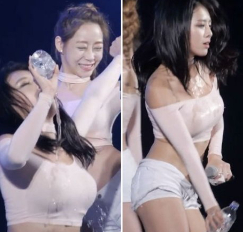 이 영상을 보면 하담은 농염한 퍼포먼스를 펼쳤다. 춤을 추다 말고, 들고 있던 생수를 전신에 뿌리기도 했다.