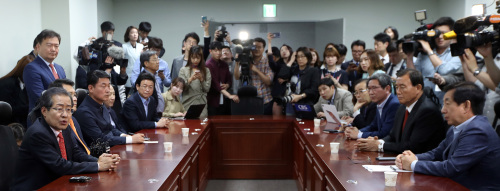 전날 밤 바른정당 소속 권성동·김성태·김재경·김학용·박성중·박순자·여상규·이군현·홍일표·이진복·장제원·정운천·홍문표·황영철 의원 등 14명은 홍 후보와 만나 후보 단일화와 탈당 등 대선 연대 방안에 대해 논의했다. 바른정당 의원들은 필요할 경우 집단탈당도 불사한다는 입장이어서, 바른정당이 창당 100여일 만에 분당사태를 맞을 가능성도 있다.