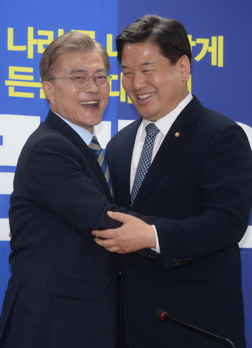 [포토] 홍의락 의원 복당 환영하는 문재인 입력 : 2017-05-04 14:33:10 수정 : 2017-05-04 14:33:10 구글 네이버 유튜브 더불어민주당 문재인 대선후보가 4일 서울 여의도 당사에서 열린 무소속 홍의락 의원 복당식에서 환영의 포옹을 하고 있다. 이제원기자 Copyright ⓒ 세계일보. 무단 전재 및 재배포 금지 Cube 이제원