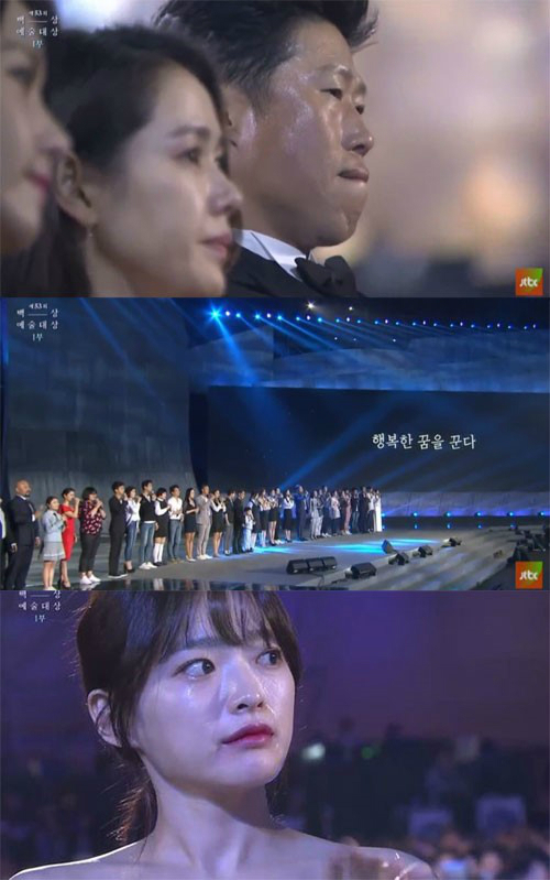 제53회 백상예술대상 축하공연이 대배우들의 눈시울을 붉혀 눈길을 끈다.