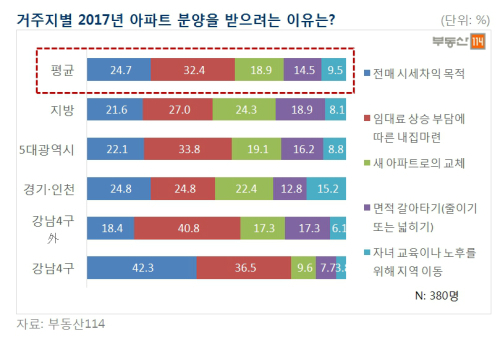| 거주지별 아파트 분양 받으려는 이유, 자료=부동산114 |
