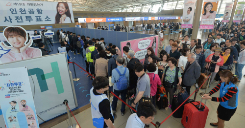 [동영상] 제19대 대통령선거 인천공항 사전투표 현장 입력 : 2017-05-05 03:00:00 수정 : 2017-05-05 00:18:04 구글 네이버 유튜브 제19대 대통령 선거 사전투표 첫날인 4일 인천국제공항 출국장에 마련된 사전투표소에 출국전 투표를 하려는 여행객들이 길게 줄을 서 차례를 기다리고 있다. 인천공항=남제현기자 Copyright ⓒ 세계일보. 무단 전재 및 재배포 금지 Cube 남제현