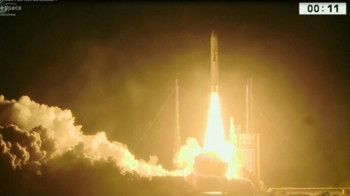 | 무궁화위성 7호가 남미 프랑스령 기아나의 쿠루우주기지에서 발사되고 있는 모습. 사진=KT STAT 제공 |