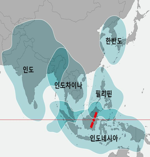 | 무궁화위성 7호의 서비스 지역은 한반도를 넘어 필리핀, 인도네시아, 인도차이나 지역으로 확대된다. 사진=KT STAT 제공 |