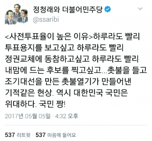 이 소식을 접한 네티즌들은 “(wolf****) 투표함 또한 중요하다 잘 지키자 투표함!” “(yuji****) 사전투표가 본 투표보다 더 편했다. 사람도 안 몰리고” “(gptj****) 국민으로써 당연한 권리를 행사한 건데” “(asm0****) 누구나 하는 투표로 생색내지 맙시다~”등의 반응을 보였다.