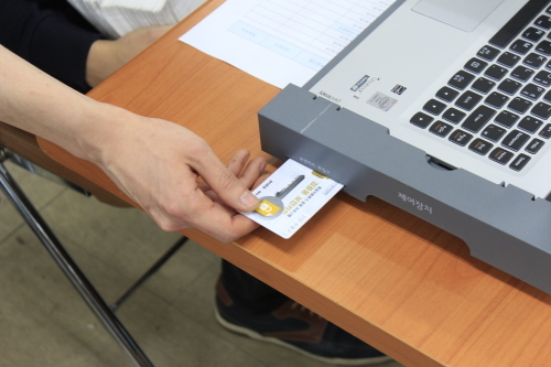 | 투표지 분류기는 보안카드를 넣은 뒤 ‘인증서 암호’와 보안카드의 암호를 입력하는 등 3중 보안절차를 거쳐야 비로소 제어할 수 있게 된다. |
