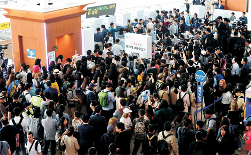| 제19대 대통령 선거 사전투표 첫날인 4일 오전 서울역에 마련된 남영동 사전투표소에서 시민들이 투표하기 위해 길게 줄을 서서 기다리고 있다. 세계일보 자료사진 |