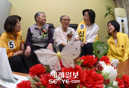 [포토] 어버이날 노래 부르는 심상정 입력 : 2017-05-08 11:49:52 수정 : 2017-05-08 11:49:51 구글 네이버 유튜브 심상정 정의당 대선후보가 어버이날일 8일 오전 서울 연남동 평화의 우리집을 찾아 일본군 위안부 피해자 할머니들께 어버이날 인사를 드리고 있다. 한윤종 기자 hyj0709@segye.com Copyright ⓒ 세계일보. 무단 전재 및 재배포 금지 세계닷컴 한윤종