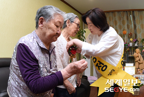 [포토] 심상정, '일본군 위안부 할머니 집 방문' 입력 : 2017-05-08 11:54:41 수정 : 2017-05-08 11:54:40 구글 네이버 유튜브 심상정 정의당 대선후보가 어버이날일 8일 오전 서울 연남동 평화의 우리집을 찾아 일본군 위안부 피해자 할머니들께 카네이션을 달아드리고 있다. 한윤종 기자 hyj0709@segye.com Copyright ⓒ 세계일보. 무단 전재 및 재배포 금지 세계닷컴 한윤종