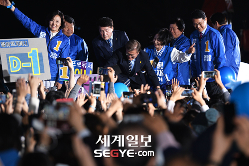 [포토] 문재인, 광화문 광장에 모인 시민들과 함께 입력 : 2017-05-08 20:37:37 수정 : 2017-05-08 20:37:36 구글 네이버 유튜브 19대 대선을 하루앞둔 8일 오후 더불어민주당 문재인 대선후보가 서울 광화문 광장에서 열린 집중유세에 참석해 시민들과 악수를 나누고 있다. 한윤종 기자 hyj0709@segye.com Copyright ⓒ 세계일보. 무단 전재 및 재배포 금지 세계닷컴 한윤종