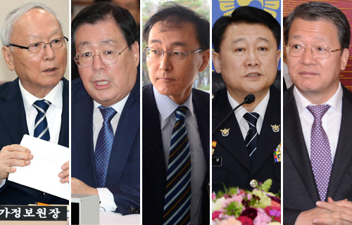 | 왼쪽부터 이병호 국가정보원장과 황찬현 감사원장, 김수남 검찰총장, 이철성 경찰청장, 임환수 국세청장. |