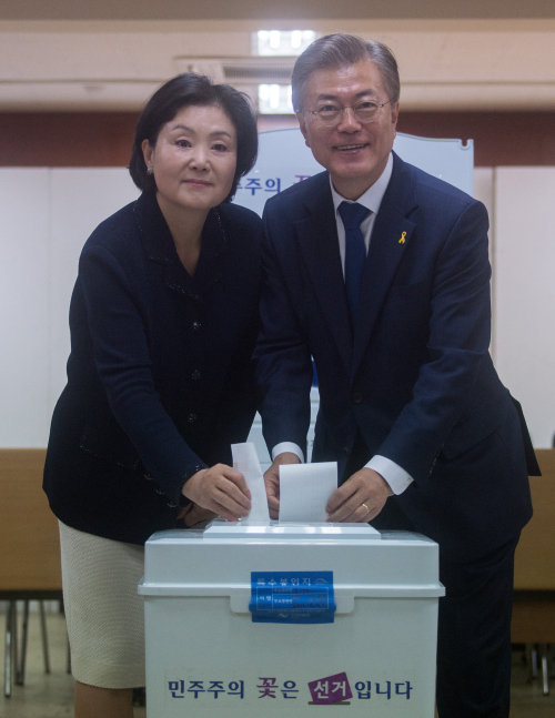 한편 문 후보는 이날 오전 서울 서대문구 홍은중학교에서 투표를 마친 뒤, 자택에 머무르다 10시30분께 주황색 등산복 차림으로 아내 김정숙씨와 함께 뒷산을 산책했다.