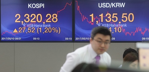 새 정부 첫날 증시가 급등락하는 모습을 보였으나 증권사들은 새 정부 출범 후 코스피 상승세에 대한 기대감이 더 커질 것으로 보고 코스피 전망치를 잇달아 상향 조정했다.
