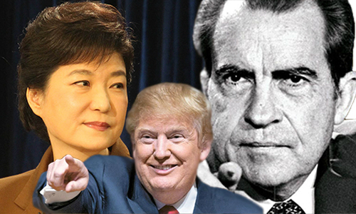 트럼프 대통령은 자신의 핵심 측근들과 러시아가 유착해 미국 대선에 개입했다는 ‘러시아 커넥션’ 수사의 최고 책임자인 제임스 코미 연방수사국(FBI) 국장을 9일(현지시간) 전격 경질했다. 미국의 뉴욕 타임스,(NYT), 워싱턴 포스트(WP) 등 주요 언론은 일제히 ‘제 2의 워터 게이트 사건’이 터졌다고 진단했다. 트럼프가 40여 년 전의 닉슨 운명을 따라가고 있다는 것이다. 트럼프의 코미 국장 해임 후폭풍을 지켜보는 한국 특파원의 눈에는 닉슨뿐 아니라 최순실 국정농단 사건으로 탄핵을 당한 박근혜 전 대통령이 오버랩된다.