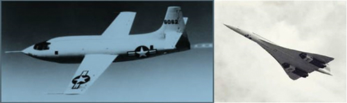 | 최초로 초음속을 돌파한 비행기 ‘벨 X-1’(왼쪽)과 초음속 여객기인 ‘콩코드’. 출처=미국항공우주국(NASA), 영국항공(British Airway) |