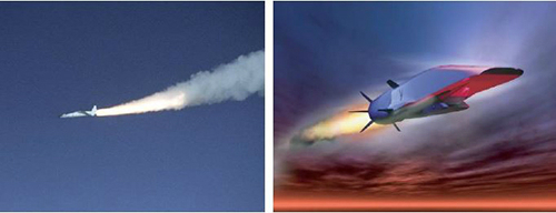 로켓은 연소 효율이 제트 엔진에 비해 매우 낮아 수백㎞ 이상 극초음속으로 순항하는 데는 한계가 있다. 이를 극복하기 위해 연구자들은 충격파의 압축 효과를 이용한 ‘램·스크램제트 엔진’이라는 새로운 극초음속 추진기관을 연구하고 있다.