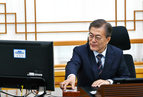 전자서명 문재인 대통령이 12일 청와대 여민관 집무실에서 제37주년 5·18 기념식 ‘임을 위한 행진곡 제창’과 ‘국정교과서 정상화’ 업무지시를 전자서명하기 위해 카드로 컴퓨터 접속을 위한 인증을 하고 있다. 청와대사진기자단