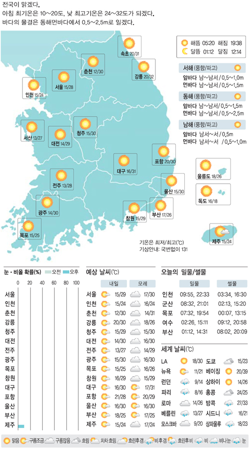 [19일의 날씨] “자외선 차단 크림 챙기세요” 입력 : 2017-05-18 18:35:02 수정 : 2017-05-18 22:11:42 구글 네이버 유튜브 Copyright ⓒ 세계일보. 무단 전재 및 재배포 금지 세계일보 배민영