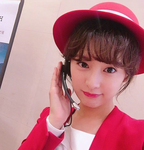 공개된 사진 속 그는 백화점 안내데스크 직원 의상을 입고 있다.
