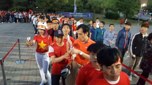 그러나 운동장에 모인 3000여명의 베트남응원단은 1차전 응원과는 더욱 진화된 모습을 보이며 경기장을 달궜다. 아무런 조직이 없는데도 대형베트남 국기를 관중석에서 펼치는 장면을 연출했고 각종 플래카드와 의상퍼포먼스를 선보였다.