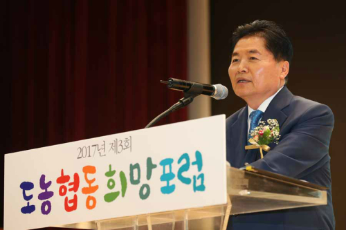 | 30일 오후 서울 중구 농협중앙회 대강당에서 개최된 2017년 제3회 도농협동희망포럼에서 김병원 농협중앙회장이 인사말을 하고 있다 |