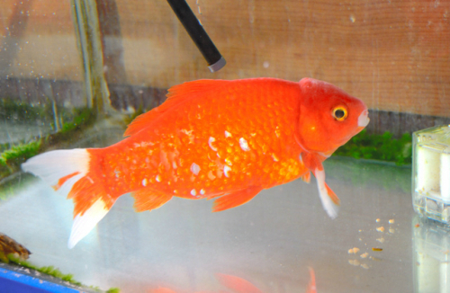 | 사사키 씨가 1984년 여름 축제에서 구매한 금붕어. 사람 나이로는 약 100세다. |
