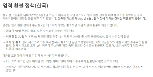 특히 그동안 에어비앤비가 가장 많은 지적을 받았던 것은 호스트에게 유리한 환불정책에 관한 부분이었다.