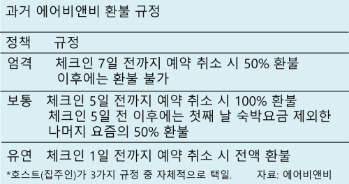 과거 에어비앤비의 환불정책은 '일반'과 '유연', '엄격'으로 나뉘었다. 집 주인이 이들 세가지 유형 중 하나로 정해 내놓으면 숙소가 필요한 이가 고르는 방식이다.