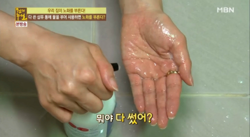 지난달 28일 MBN ‘천기누설’은 다 쓴 샴푸 통에 물을 부어 사용하는 습관이 노화를 부를 수 있다고 경고했다.