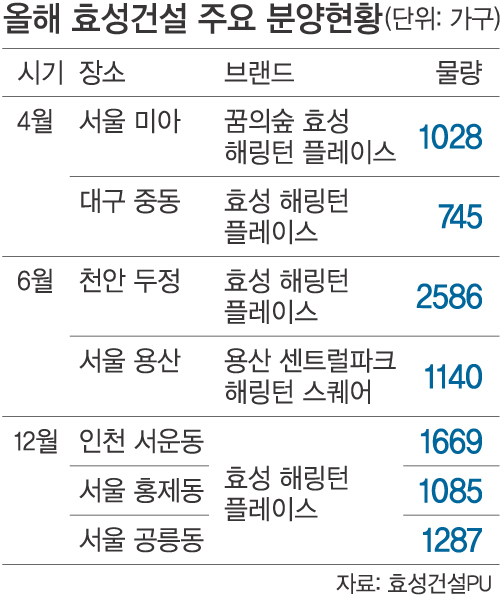 효성은 올해 건설부문의 역량을 다져나간다. 국내 주택사업을 중심으로 효성건설PU의 주거 브랜드인 ‘효성해링턴 플레이스’ 공급에 주력할 방침이다.
