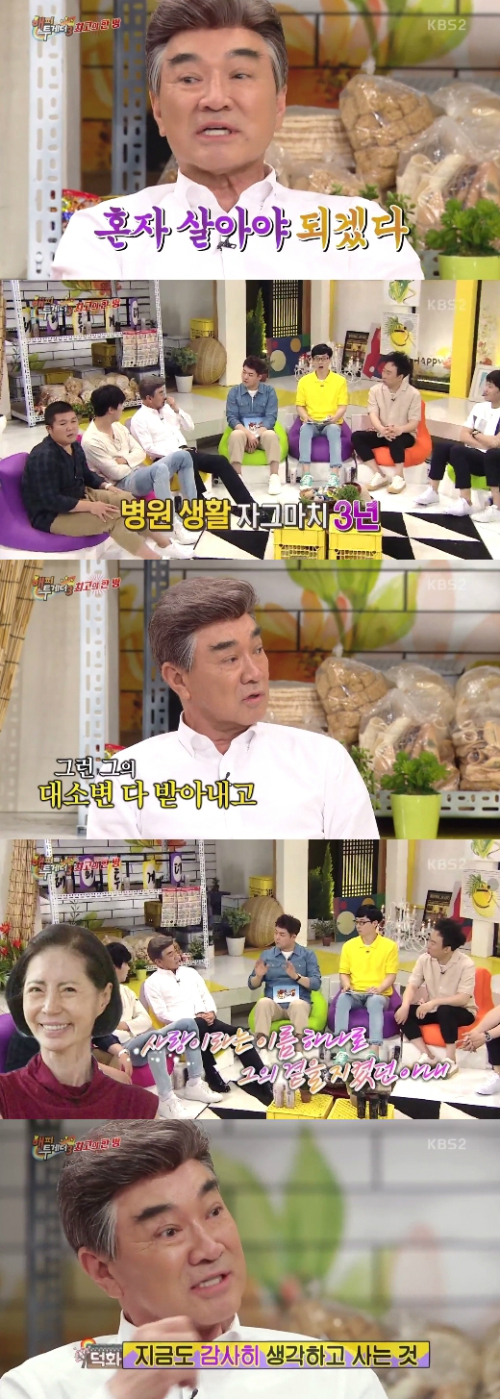 이날 방송에서 이덕화는 "아내와 한 동네에서 같이 자랐다. 내가 '가라고 시집!' 이러면 '나 안 간다니까. 혼자 산다.'고 그랬다. 그러다 교통사고가 나 병원에 3년 있었다. 그 3년이 누워만 있는 게 아니었다. 식물인간으로 2년 있었다. 아내가 내 대소변을 다 받아냈다. 죽을지 살지도 몰랐다. 살아나도 장애자가 될지, 다시 건강하게 살지 몰랐다"고 당시를 회상했다.