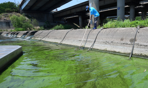 [포토] 한강 녹조 발생 입력 : 2017-06-18 17:03:38 수정 : 2017-06-18 17:03:38 구글 네이버 유튜브 18일 오후 녹조가 발생한 한강 성산대교 인근 홍제천 합류부가 녹색으로 물든 가운데 한강시민공원 직원이 녹조를 걷어내고 있다. 홍제천 합류부는 물 흐름이 좋지 않아 여름철마다 녹조가 국지적으로 다량 발생하는 지역이다. 이재문 기자 Copyright ⓒ 세계일보. 무단 전재 및 재배포 금지 Cube 이재문