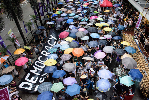 | 시진핑 중국 국가주석이 1일 홍콩 완차이 컨벤션센터에서 열린 캐리 람 홍콩 행정장관 취임 선서식 직후 연설하고 있다. 홍콩=AFP연합뉴스 |