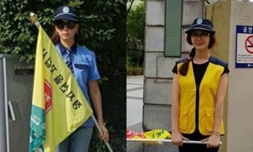 공개된 사진 속 채시라는 긴 머리를 단정하게 땋아 내리고 안경을 쓴 채 노란 조끼를 입고 있다. 녹색어머니회는 학부모들이 학교 근처 횡단보도에서 어린이 교통사고 예방을 위해 교통지도를 하는 민간 자원봉사 단체다.