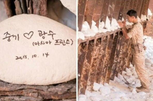 공개된 사진은 과거 송중기가 출연한 KBS2 '태양의 후예'의 한 장면을 캡처한 것으로, '중기♡광수'라는 글씨가 적혀있다.
