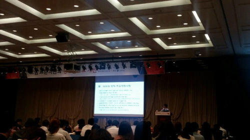 | 12일 서울 여의도 중소기업중앙회 그랜드홀에서 열린 '보험 표준약관의 장해분류표 개선' 공청회에서 임동섭 광주보건대학교 교수가 현재 마련 중인 장해분류표 개선방안을 설명하고 있다. 사진=유은정 기자 |
