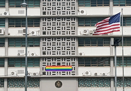 주한 미국대사관이 성소수자들의 축제를 지지한다는 의미가 담긴 무지개 깃발을 내걸었다.