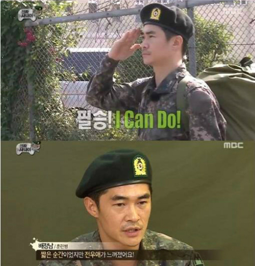 이에 배정남은 교관을 만나기 전 훈련 준비를 하는 멤버들에게 “몸이 힘든 게 낫지 마음이 불편해서”라고 하면서 조기퇴소를 미안해했고, “필승 아이캔두(I can do)”라고 마지막 인사를 전했다.