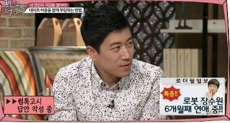 장수원은 2년 전 한 TV 예능 프로그램에 출연해 ‘마지막 연애가 언제냐'는 질문에 “언제나 진행 중”이라고 답해 연애를 인정했다.