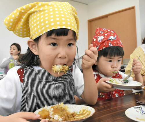 | 일본 도쿠시마현의 '윤리적 소비 식당'에서 어린이들이 착한 소비로 만든 음식을 먹고 있다. |