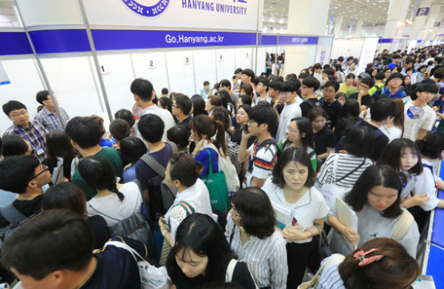 | 최근 3년간 대입 수시모집 학생부종합전형에 합격한 수험생들은 학생부 비교과 활동은 물론 내신과 수능 성적도 상당히 높았던 것으로 분석됐다. 사진은 한국대학교육협의회가 지난달 말 서울 강남구 코엑스에서 연 ‘2018학년도 수시 대학입학정보박람회’ 모습. 연합뉴스 |