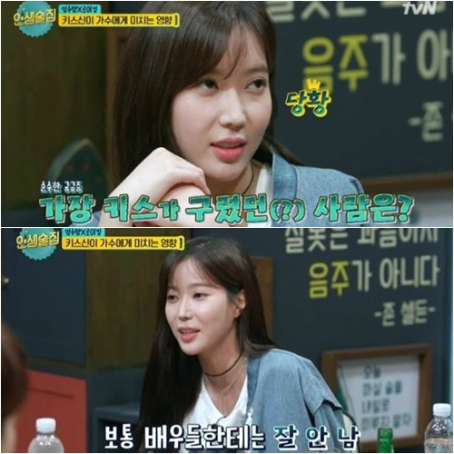 이를 들은 가수 로이킴은 "(키스신) 해본 사람들 중 가장 구렸던 사람이 누구냐"고 물었다. 이에 임수향은 "제일 구린 건 입 냄새가 나는 사람"이라며 "보통 가글을 하지만 아예 속이 안 좋은 사람이 있지 않냐"며 "보통 배우들한테는 잘 안 난다"고 솔직하게 답했다.