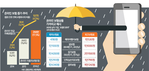 온라인 보험 가입이 늘어난 것은 인터넷과 모바일을 이용해 금융상품에 가입할 때 인증수단이 다양해지는 등 절차가 쉬워진 데다 보험을 비교할 수 있는 웹사이트 등이 생기면서 채널도 다변화했기 때문으로 분석된다.