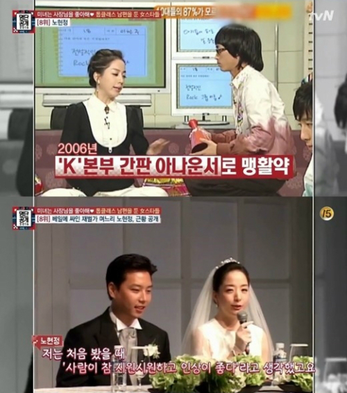| 과거 tvN '명단공개 2016'에서 노현정이 정대선 현대 비에스앤씨 사장과 결혼한 계기를 조명했다. 사진=tvN 캡처 |